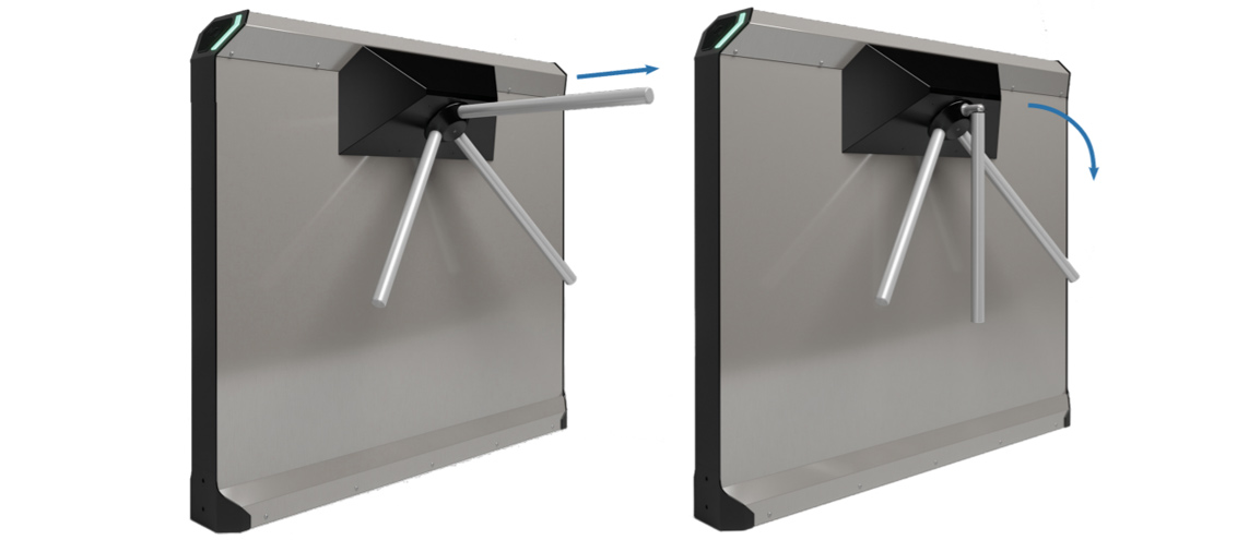 Преграждающие планки-антипаника предназначены для оперативного освобождения прохода в качестве дополнительной меры по обеспечению эвакуации, а также для проноса крупногабаритного груза. Рекомендуется кратковременная эксплуатация турникета при открытом положение преграждающих планок.
