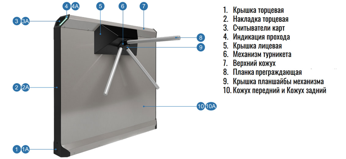 Тип корпуса турникета | Однопроходной, Тумбовый, Напольный |
