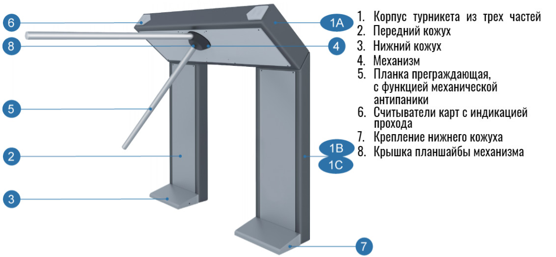 Тип корпуса турникета | Однопроходной, Тумбовый, Напольный |