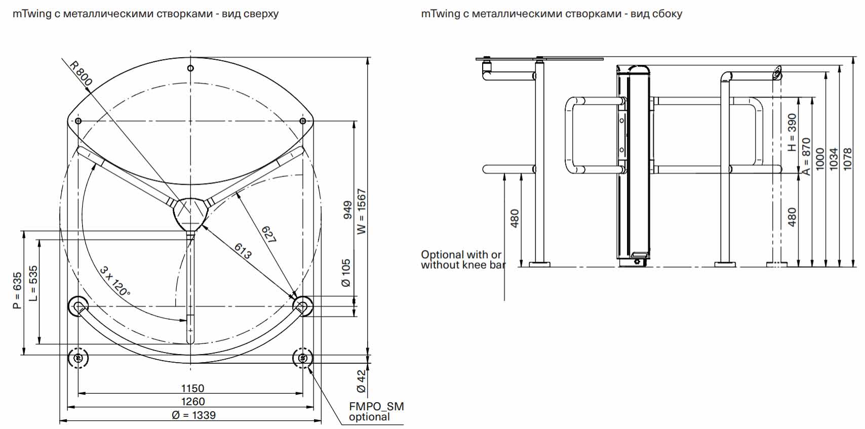 FlowMotion® mTwing моторизированный полуростровой роторный турникет для стеклянных створок (створки поставляются отдельно), доступно более 20 цветовых оттенков, низкая сила при ударе, разблокировка при отключения питания, материал тумбы - алюминий, 100% интенсивность работы, возможна установка подсветки пола и тумбы, высота 1034 мм.