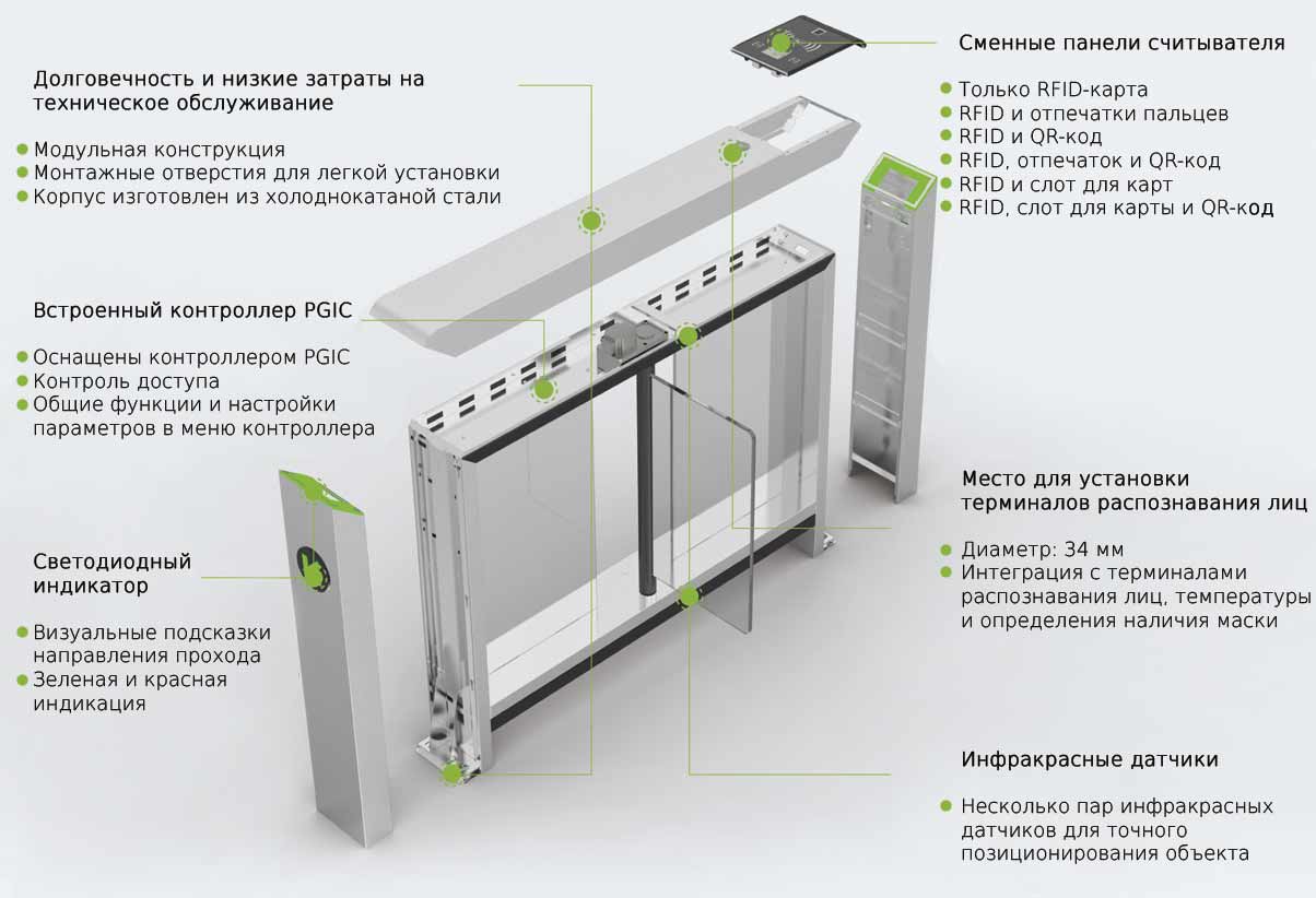 Тип корпуса турникета | Однопроходной, Тумбовый, Напольный |