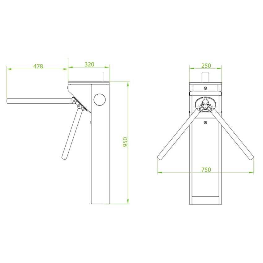 Новый турникет-трипод с компактной конструкцией, позволяющей уменьшить занимаемую площадь, весь корпус изготовлен из нержавеющей стали и является долговечным. Интегрирован со световым индикатором входа на видном месте для направления прохода. Турникет автоматически опускает планку при возникновении чрезвычайных ситуаций.