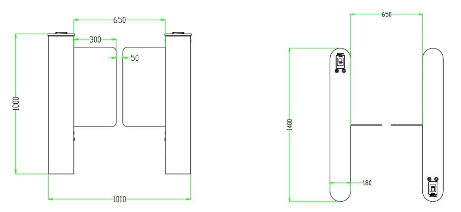 Турникеты SBTL5000 обычно работают в заблокированном положении, что препятствует свободному доступу на закрытую территорию. После считывания (RFID и / или отпечатка пальца), при положительной верификации пользователя, створки барьера автоматически распахиваются, позволяя пользователю свободно пройти.