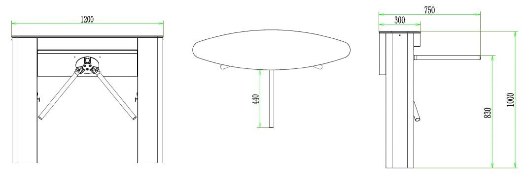 • Габариты: L=1200, W=750 (тумба 300), H=1010 мм